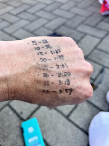 これはコーチにもらったペース配分、これがめちゃよかった。