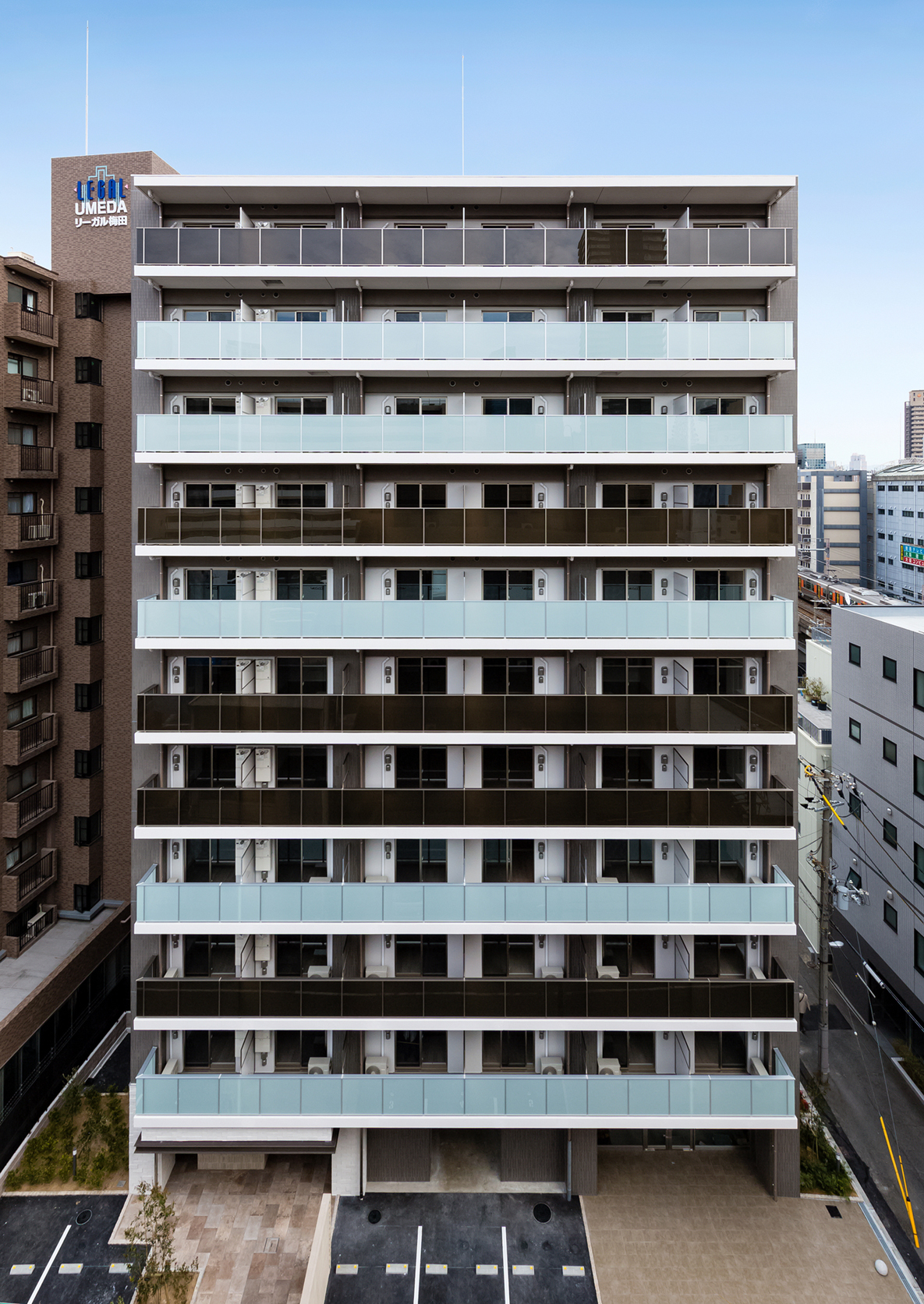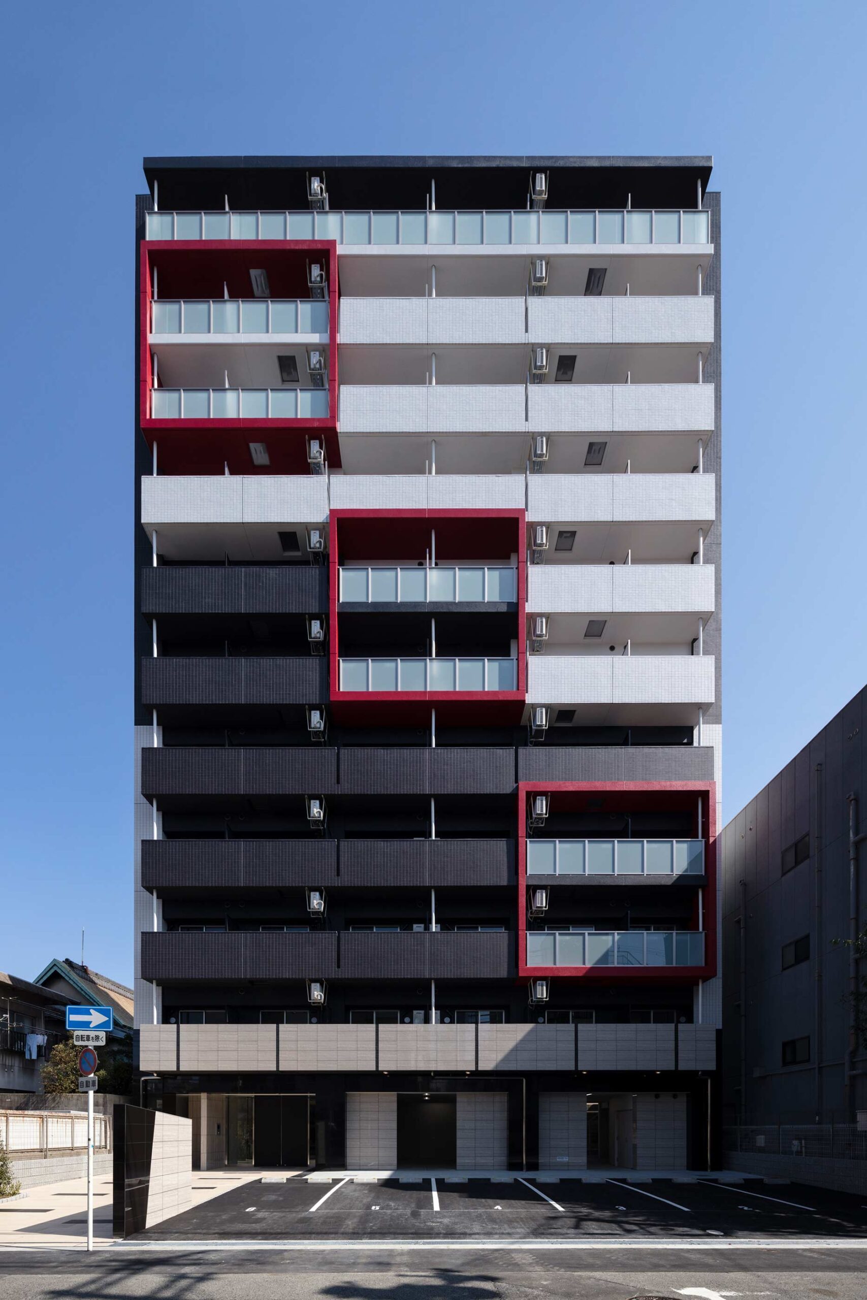 - 若者の街天王寺エリアに近いため、スタイリッシュな外観をイメージした。白と黒をベースに一部アクセントで赤も使いインパクトのある表情を出しました。国道や近鉄電車からも良く見える建物となり、オーナー様も大変喜んで頂きました。